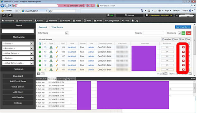 >> virtual servers -> list virtual servers -> in that list of VM will be listed -> now if you click the (*) as per in red square below option means, it will delete.