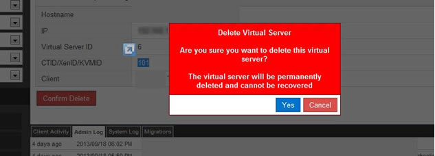 Alternatively, you can also log into SSH to delete the virtual server by using the following command.