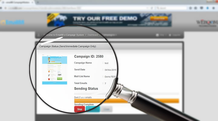 Email88 provides the ability to send bulk email to target audiences, The intent is to send newsletters or promotional materials to opt-in lists of subscribers. The software typically includes a database that stores contact information, campaign statistics, and message history. The interface provides features necessary to run an email campaign, such as message sending, contact entry, contact importing, and reporting.