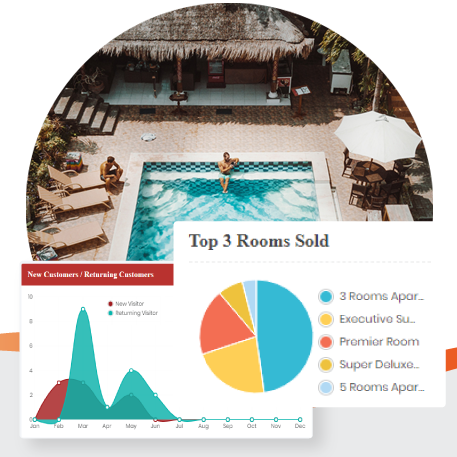 The booking engine makes it easily to analyze weekly, monthly or yearly sales as well as top selling rooms..